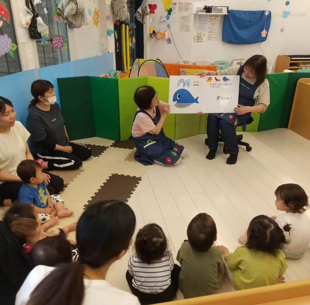 この日は、絵本の読み聞かせ&手作り工作(おさかなつりだよ~<゜)))彡)などを楽しみます。