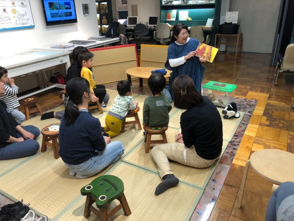 自然資料館に戻ってからは、絵本とわらべうたを楽しみました。