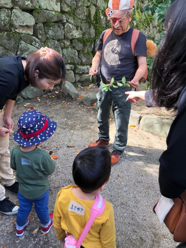 二の丸では、ハトや、てんとう虫、バッタ、きのこまででてきて、子どもたちも興味深々の散策でした。